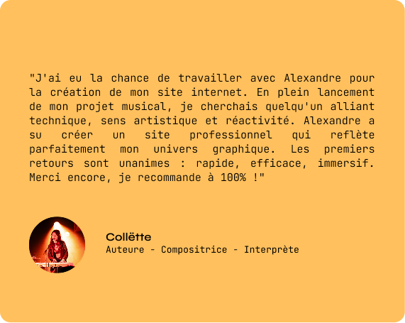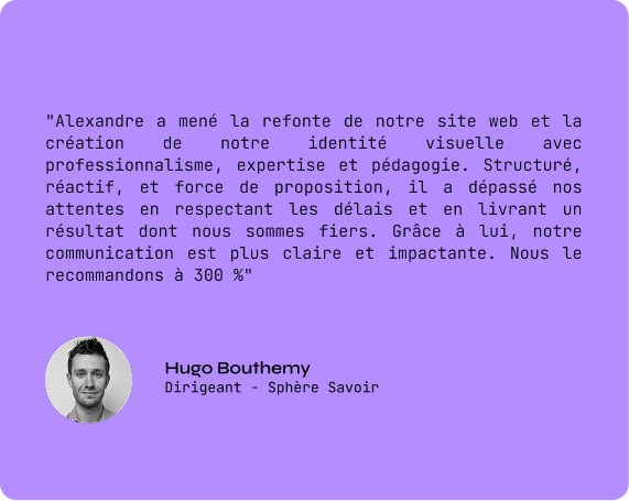 Je conçois des identités fortes et des sites qui convertissent, tout en restant fidèles à votre ADN. Plus qu’un prestataire, je suis votre allié. Ensemble, faisons rayonner tout le potentiel de votre marque ❊